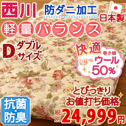 ★西川チェーン賞7年連続受賞★ダブルサイズの羊毛敷き布団敷布団敷きふとん敷ふとんが特価【西川敷布団・ダブル・日本製】超軽量!持ち運びラクラク♪西川リビング 軽量バランス敷き布団/防ダニ804柄<日本製 価格: 21,900円 レビュー評価:4.5 レビュー数:6 ベージュ[ダブルはベージュのみ] 在庫あり 24時間以内出荷可 ※ご注文状況により、在庫表示が、上記内容と異なり完売になる場合があります。ご了承ください。商品名:超軽量!持ち運びラクラク♪西川 軽量バランス敷き布団/防ダニ804柄<日本製>◆メーカー:西川リビング◆メーカー品番:1336-80421◆商品お問合せ番号:2921◆商品規格:■サイズ:ダブル 140×210cm■中綿素材: 上層/ウール50% ポリエステル50% 0.7kg 中層/ウレタンフォーム(プロファイルウレタン:バランスタイプ) 2.6kg 下層/ウール50% ポリエステル50% 1.4kg■中綿総量 4.7kg■生地: Supported by 楽天ウェブサービス |
