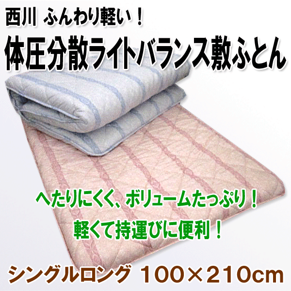 【送料無料】350枚突破!西川の超軽量敷布団が何と63%OFF♪凸凹形状で身体をしっかり体圧分散!【新柄登場!】【即納】西川体圧分散ライトバランス敷き布団 シングルロング 敷布団 敷ふとん(100×2 価格: 10,500円 レビュー評価:4.53 レビュー数:79 サイズシングルロングサイズ(100×210)商品説明表層:羊毛50%、ポリエステル50%、1.5kg裏層:ウレタンフォーム使用、1.8kg表面はムアツふとんのような、凸凹形状で体圧分散で身体に負担をかけません。また非常に軽量に作られておりますので、お布団の上げ下ろしも楽チン♪抗菌防臭加工でとっても清潔にお使いいただけます。普段用に、急な来客に、贈り物に、お子様にいかがですか?充填量3.3kg配 色ピンク・サックス製造国日本製※沖縄、離島、一部地域の方は送料は無料ですが、中継料が別途発生します。予めご了承ください。この商品に興味を持った人は、こんな商品にも興味をもっています! 西川抗菌防臭3層敷 Supported by 楽天ウェブサービス |